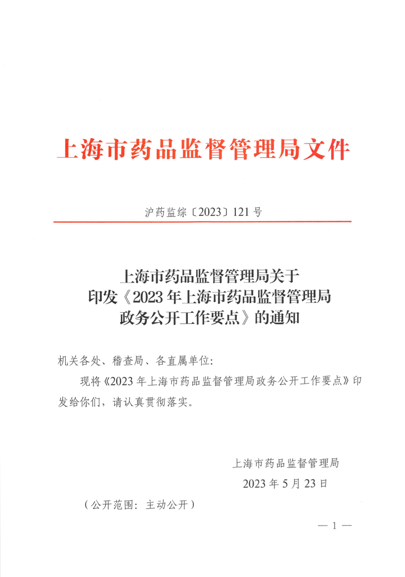 沪药监综〔2023〕121号