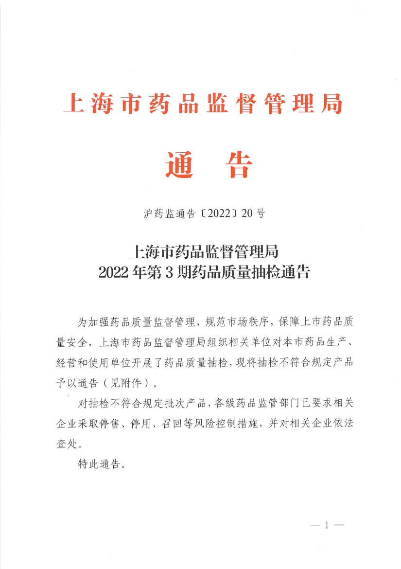 沪药监通告〔2022〕20号