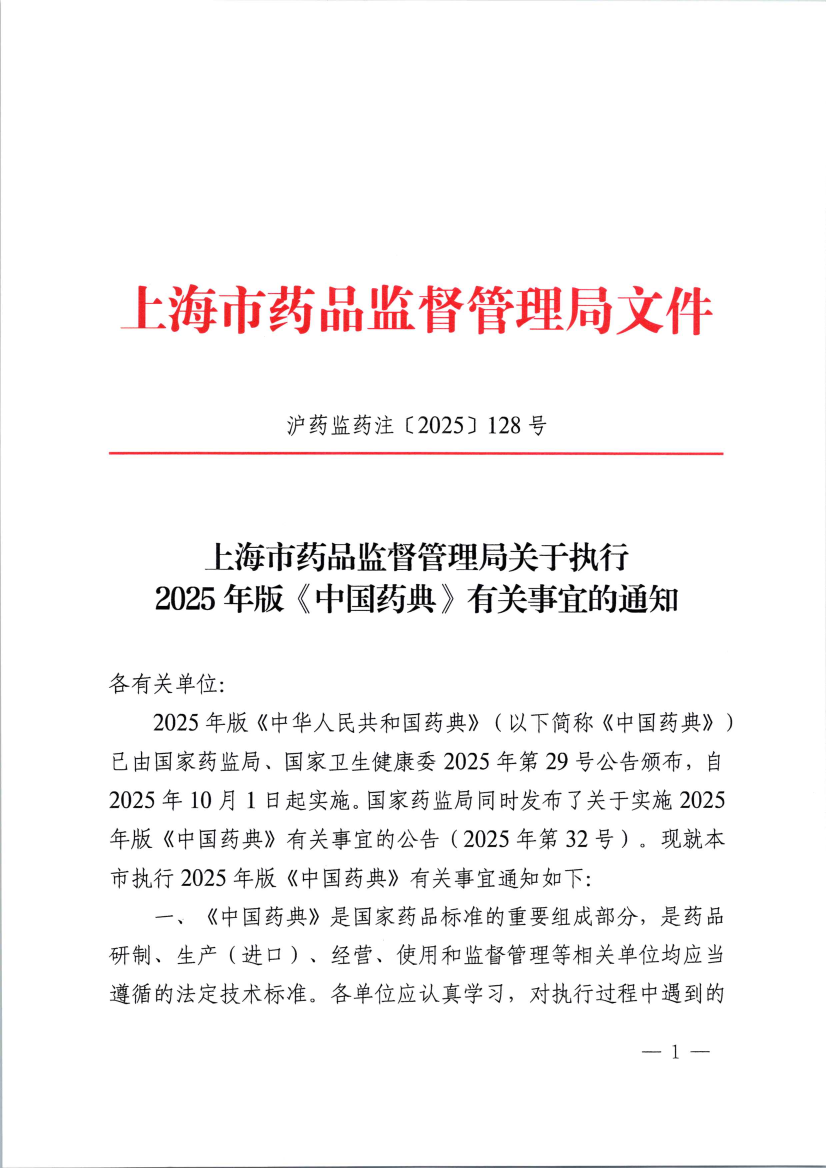 2025年版《中华人民共和国药典》(以下简称《中国药典》)已由AG真人、国家卫生健康委2025年第29号公告颁布,自2025年10月1日起实施。AG真人同时发布了关于实施2025年版《中国药典》有关事宜的公告(2025年第32号)。现就本市执行2025年版《中国药典》有关事宜通知如下: